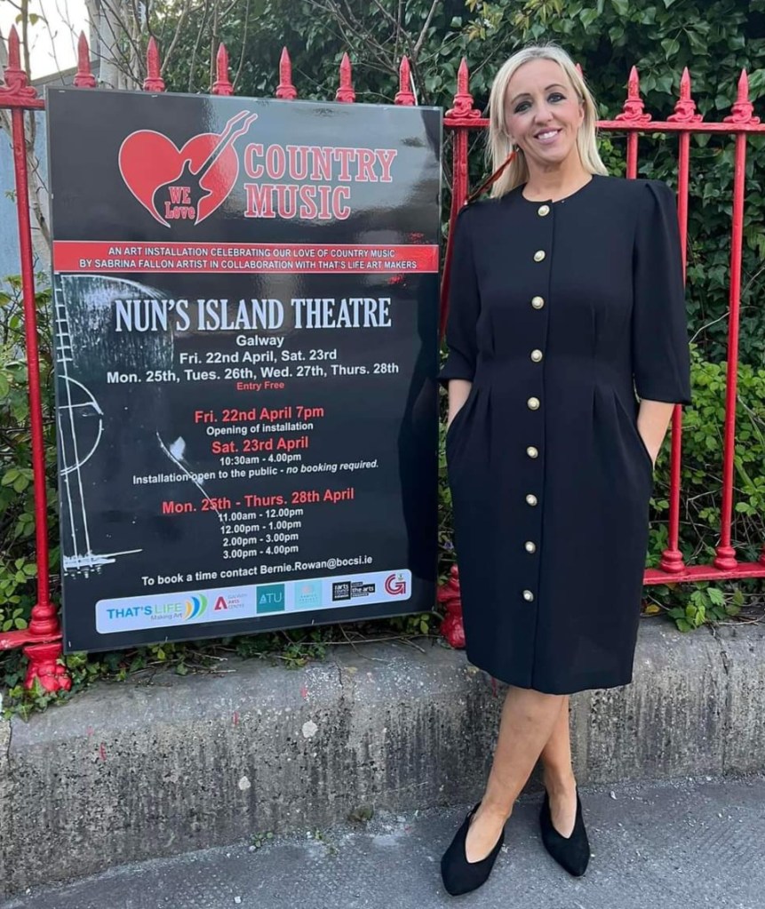 “I wanted to express my parents’ love for each other”, she explained at the time, “a love they still hold on to 50 years down the road. Mum (Eileen) told me that she and dad (Patsy) waltzed in the kitchen when Valerie Hughes played it on Galway Bay FM. As long as mum and dad see how much their love has inspired me, that’s enough.” Sabrina’s artistry extends to creation in so many forms, and now, she can add the gorgeous WE LOVE COUNTRY MUSIC exhibition to that list.