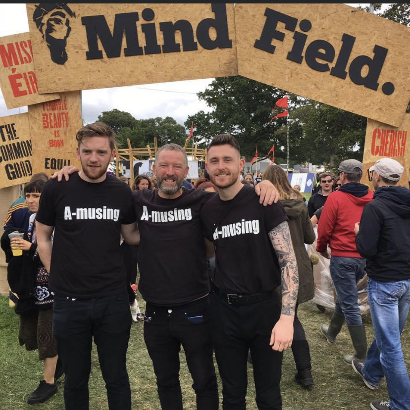 “‘A-Musing’ was my very first gig …..well kind of. My first ‘gig’ was as best man for a friend. It went so well a seed was planted. I knew it was something that I could be good at. Getting a hundred or so – mostly strangers – laughing is such a rush. I’d had friends many times tell me I should be performing comedy onstage. I’ve always had an artistic side both with my hands and probably a bit of flamboyance with my words when the occasion suited. The poetry was encouraged by a customer and friend who’d seen a poem I’d written for an old flame and he had run a serious poetry competition in Ireland for a few years. He said it was seriously good …so that watered the performance seed and that grew into the idea of performing. So I took to the internet to find a gig. There was a three month waiting list for a spot at the bottom rung of the ladder on the comedy scene. So I Googled ‘poetry gig’ and ‘organize your own gig’ came up …so I did. I rang Accents cafe in Dublin and organised an event for the following January and invited all my friends.We had a crowd of about fifty people and I did a set of poetry and a set of comedy and an almost 6 year monthly show started that night. The genius Mark Cox joined me the next month and became the second A-musing member. The brilliant Paul Curran became number three followed by Liam McCabe. There’s only myself and Liam left performing as A-Musing from the original group but we don’t go anywhere without Paul in our hearts and an open door for Mark if he ever graces the shores of Ireland again. Over those six years so many brilliant people both established and people just setting out graced Accents and many of them we took with us to festivals as special guests. A lot of people who are becoming household names now. We’ve taken A-Musing to seven Electric Picnics, Body and Souls, and near enough every other festival in Ireland in that time. We’ve been to nights all over this island and put on shows or been part of shows that will live long in the memory. But more than all that I’ve made friendships which will last lifetimes up and down this country and feel lucky to have seen the best of people…for the arts bring out the best of people. So A- Musing was and is something that will always make me proud to be a part of. It’ll be at Electric Picnic again this year along with Poetry Kiln in The Word tent in Mindfield.”